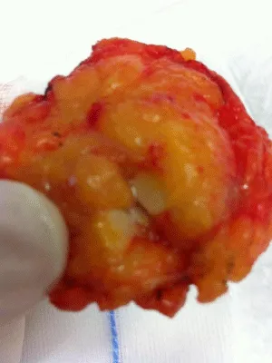 Patient was seen in consultation in our outpatient clinic a month after discharge as postoperative follow. No further follow up was needed because of the benign findings of the lesion (Figure 3).