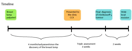 Discussion: It is important that this type of lesion be identified clinically, radiologically and pathologically by all physicians managing breast tumours, in order to offer the most appropriate treatment. Using this classical clinical case, we will discuss the histological characteristics and the management of this type of lesion.